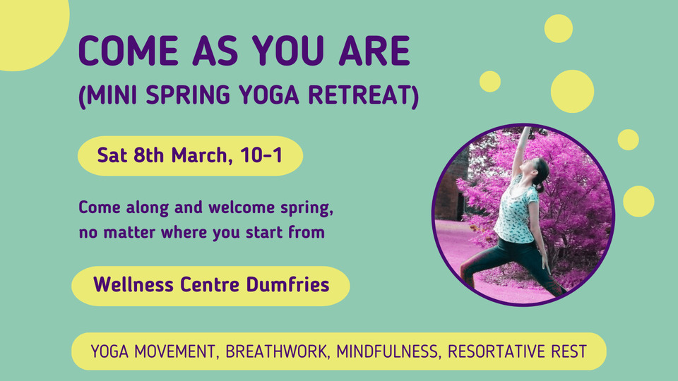 Location: Wellness Centre Dumfries, 9 George Street Meuse, DG1 1HH (sort of 'behind' Greyfriars Church, in the centre of town, access from George St)